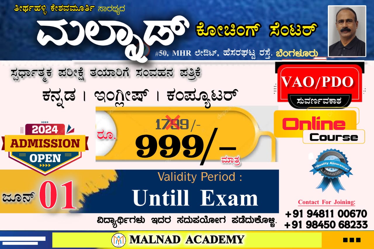 This course includes three subjects - Kannada, English and Computer. The VAO (Village Administration Officer) course is designed to equip participants with the necessary skills and knowledge to effectively manage the administrative responsibilities of a village. From record-keeping to handling public grievances, this course covers all aspects of village administration.